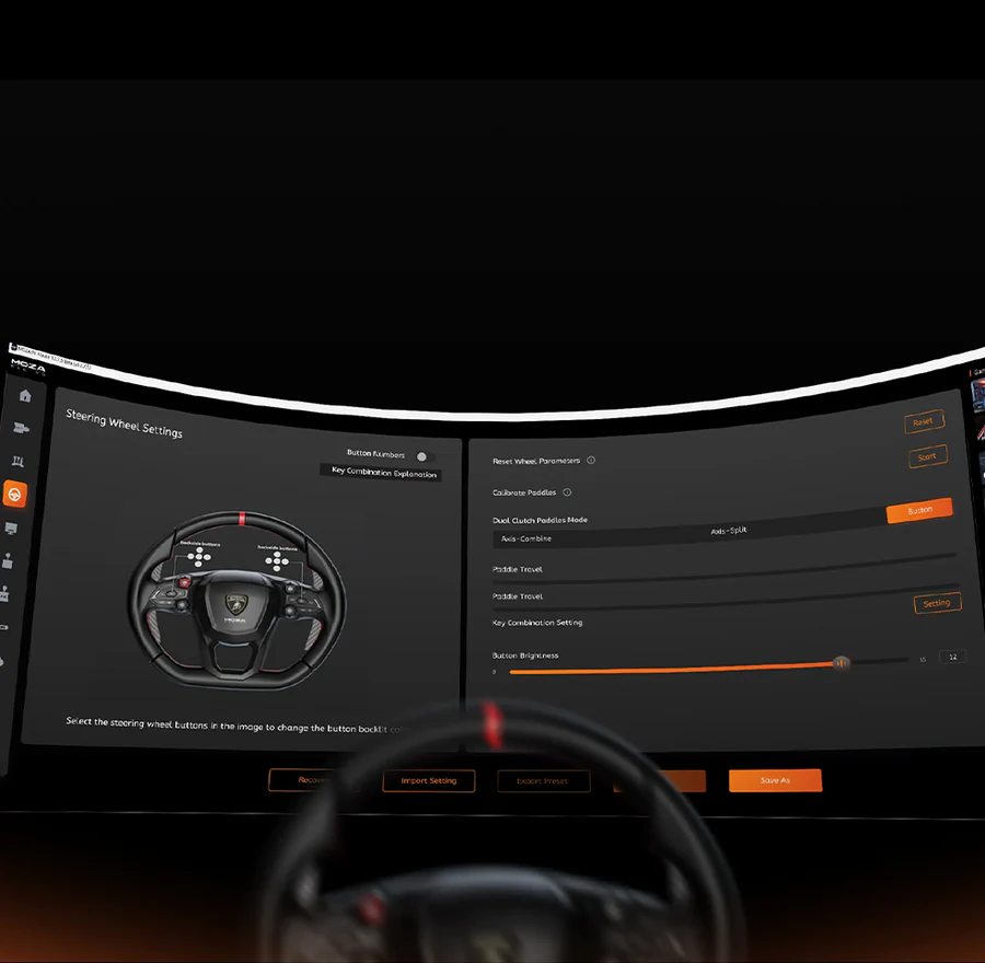 A MOZA Pit House szoftver teljes támogatása lehetővé teszi a részletes bemeneti leképezést, a világításvezérlést és a teljesítményhangolást a teljesen személyre szabott versenyélmény érdekében.