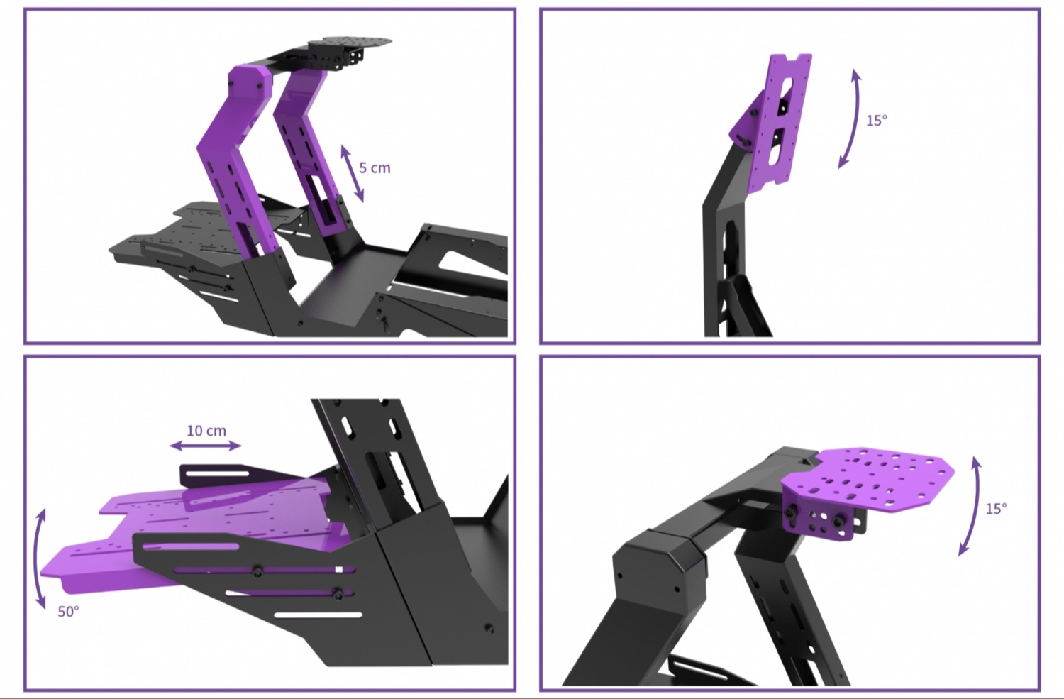 A GT-Lite rig a letisztult, minimalista dizájnt robusztus bővíthetőséggel ötvözi, zökkenőmentes bővítéseket támogatva, mint például az integrált monitorállvány, a váltó- és kézifék-tartó, a kulacstartó, a billentyűzettartó és az egérpad, lehetővé téve a felhasználók számára, hogy könnyedén fejlesszék szimulátoros versenyfelszerelésüket.