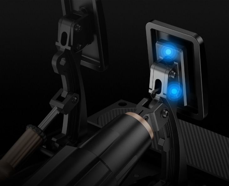 A hagyományos, passzív visszacsatolással működő pedáloktól eltérően az innovatív aktív erő-visszacsatolási rendszer, amely motorokból és golyósorsókból áll, erős határolóerőt és visszarugózást biztosít. Széles pedálérzetet képes szimulálni, az utcai autó gázadagjától az F1-es autó fékjéig.