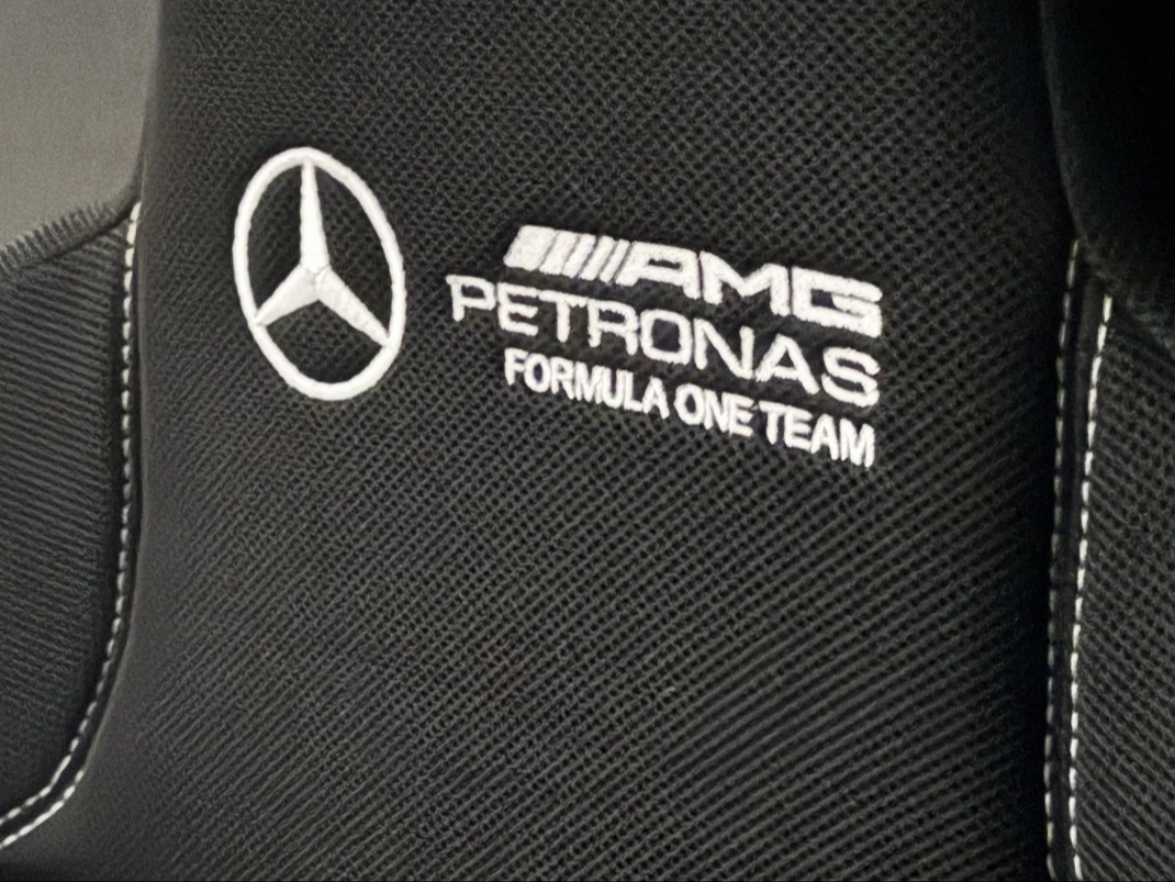 Újonnan kifejlesztett, megerősített üvegszálas műanyagból (GRP) készült ülésünk szabadalmaztatott formatervezésű és precízen úgy lett megtervezve, hogy utánozza egy igazi Forma-1-es autó üléspozícióját. Különös figyelmet fordítottunk a szerkezeti merevségre, így a hajlékonyság messze meghaladja a piacon jelenleg elérhetőket. Az ülés 3D-s, légáteresztő anyaggal és puha, tartást adó párnázással készült, a hivatalos Mercedes-AMG PETRONAS Forma-1-es csapat logóval díszítve, így valóban prémium megjelenést és érzetet kölcsönöz.