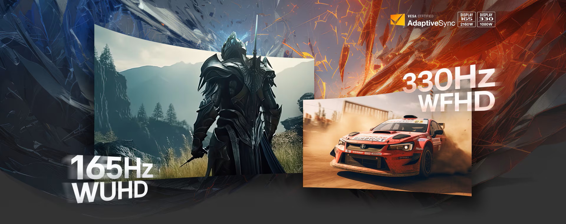 - Dual-Mode (WUHD 165Hz ↔ WFHD 330Hz)