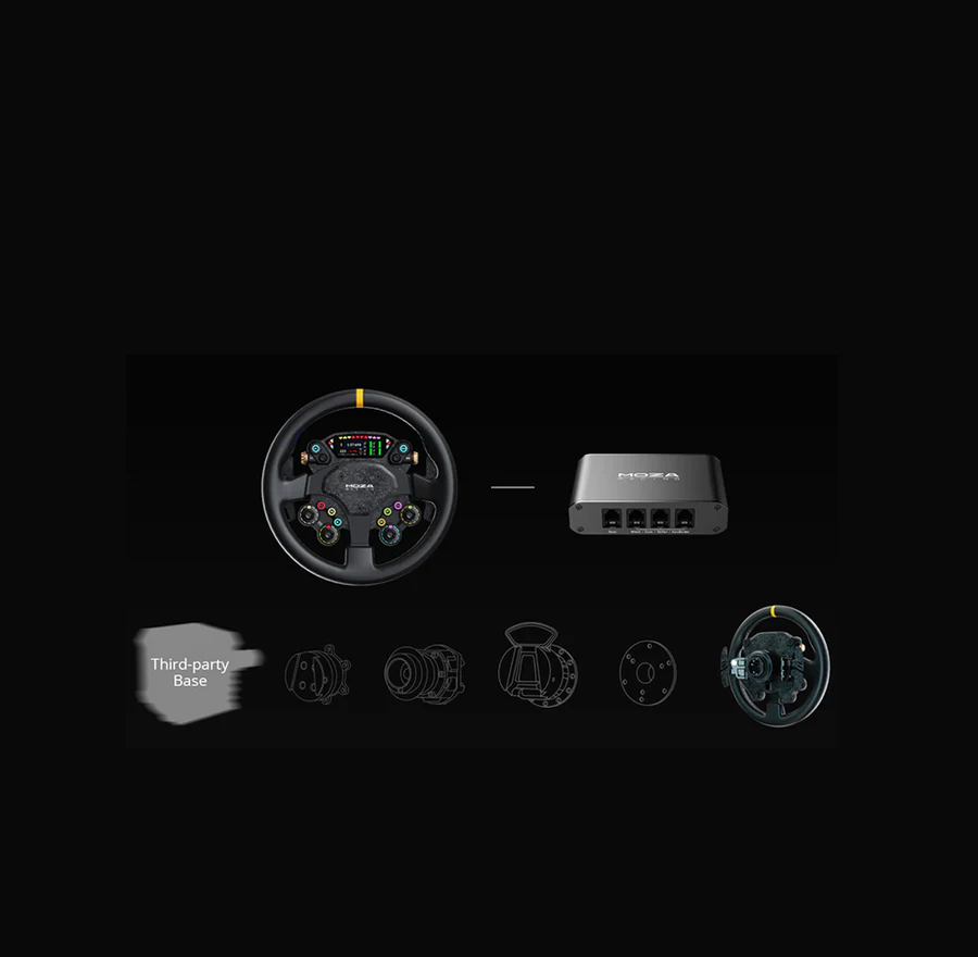 A CS Pro kompatibilis az összes MOZA tengelytávval és támogatja a közvetlen PC-kapcsolatot a MOZA agykészleten keresztül, valamint harmadik féltől származó tengelytávokkal is működik – rugalmas, nyílt szimulátoros versenybeállításokhoz tervezve.