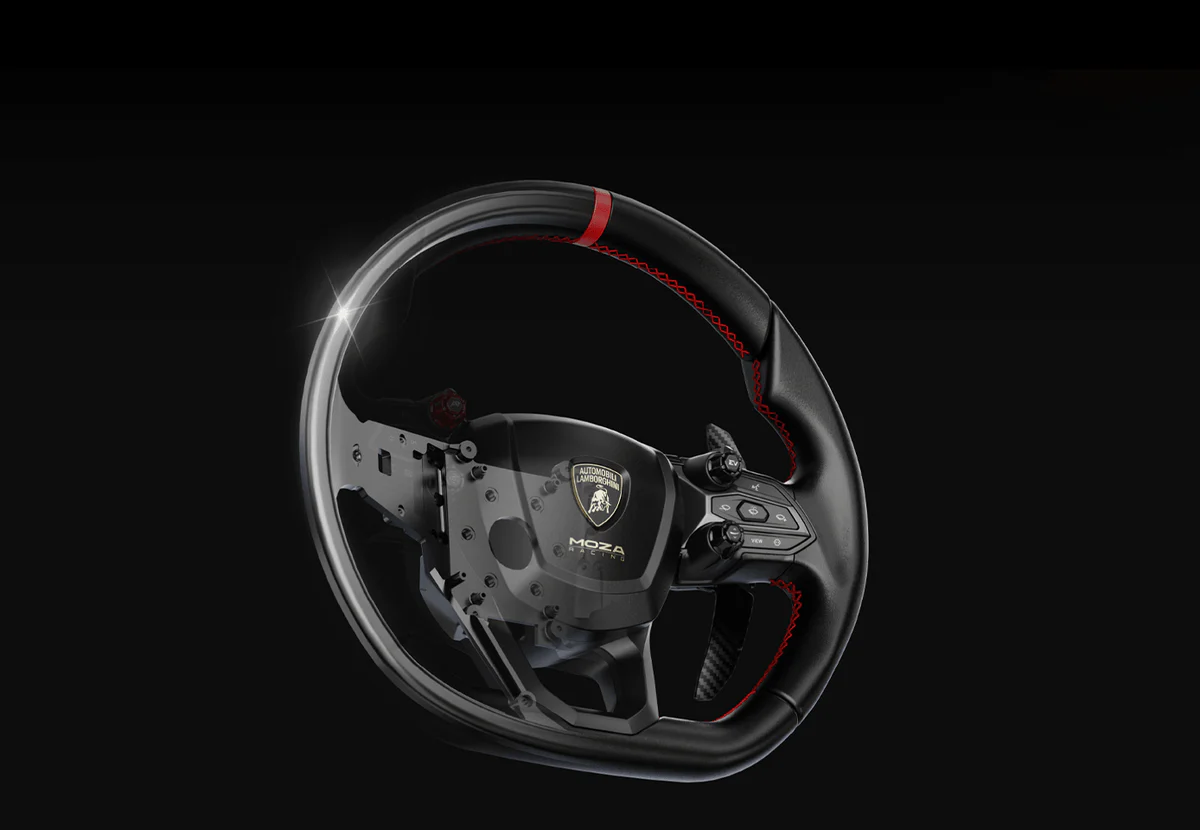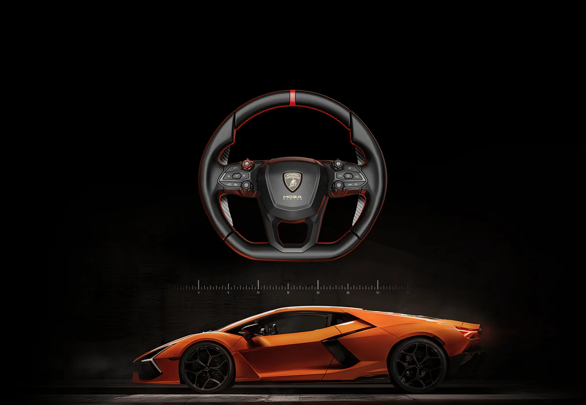 Hivatalosan licencelt Lamborghini Revuelto kormánykerék, eredeti CAD adatokból aprólékosan újraalkotva, alumínium kerettel, szénszálas dupla kuplungos kormányfülekkel és teljesen programozható kezelőszervekkel.