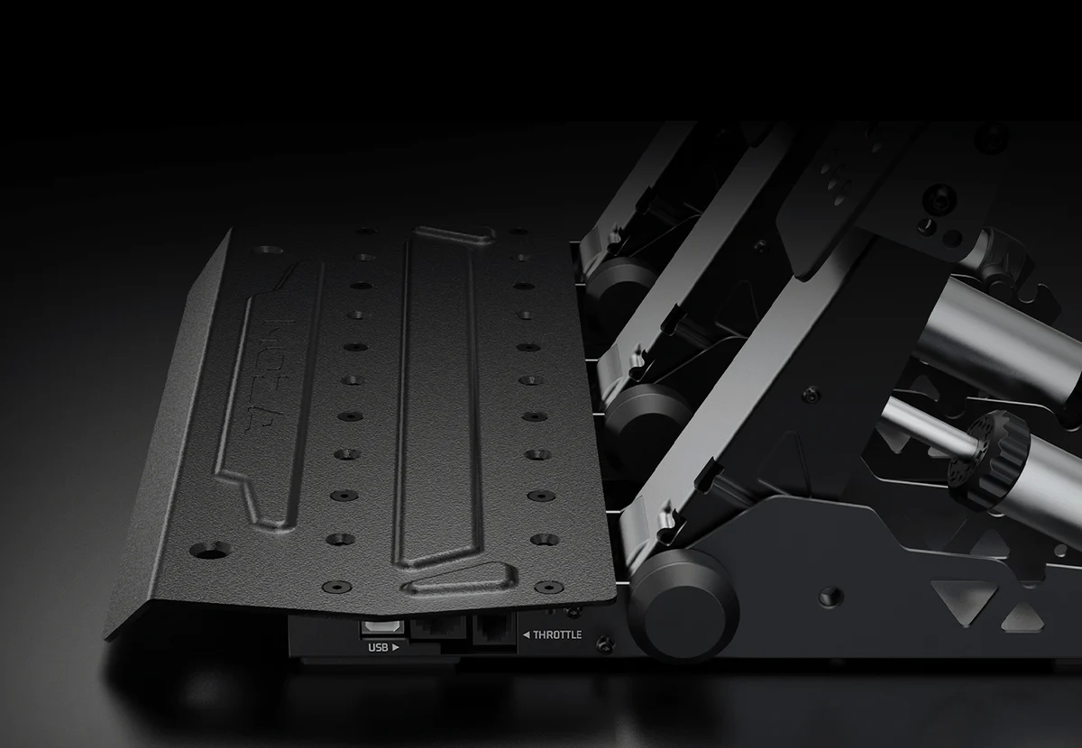 Versenykész pedálok a tökéletes irányíthatóság érdekében – teljesen állítható, rendkívül precíz és repülőgépipari minőségű anyagokból készült a komoly szimulátorversenyzők számára.
