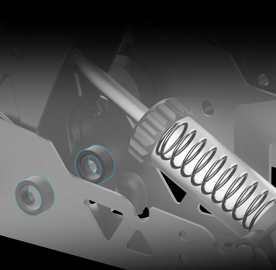 A zárt hüvelymozgás és a polírozott acél tengelyek rendkívül sima pedálmozgást biztosítanak, míg a puha határoló párnázás csökkenti a zajt a magával ragadóbb versenyélmény érdekében.